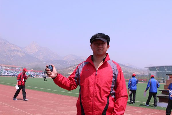 在跑道的终点我们找到了计时员薛栋老师,据薛老师说:“计时是一项非常谨慎的工作,必须本着对运动员认真负责的态度,来对待计时工作”。是啊,秒表虽小可是满满的写满了公平,向我们所有的计时员致敬。
