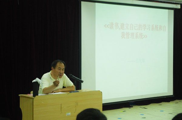 报告会一开始,张化雄老师就提出了一个问题:读书的目的是什么?四个同学踊跃回答,得到了张老师的肯定,并每人得到一幅张老师的毛笔字作品,张老师与学生间的互动很快拉开了报告会的序幕。报告会期间,张化雄老师用富有哲理的寓言、发人深省的故事、鲜活生动的案例并结合自身经历,深入浅出的为大家诠释了为什么要读书、什么是学习系统、什么是自我管理系统。并告诉大家怎样去读书,怎样去建立自己的学习系统和自我管理系统,怎样去提高自己的内涵和竞争力,怎样去活出自己的精彩,张老师幽默诙谐的演讲博得同学们的阵阵掌声。