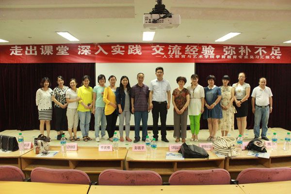 一阵热烈的掌声将学前教育专业的带头人赵宏义老师迎上台。温文尔雅的赵教授从学前教育专业的专业特色、人才培养、就业前景等方面对学前教育专业进行了介绍和分析。随后人文教育与艺术学院教学院长周萍老师为此次汇报大会致辞。伴随着大型手语表演《跪羊图》的旋律,汇报大会的序幕拉开了。做汇报的同学们个个精神饱满,语言流畅,讲出了此次见习他们的所见所闻所感,谈出了见习过程中的不足和收获,说出了他们的希望和理想。为了缓解领导和老师们的视听疲劳,在汇报之中同学们还穿插了各类精彩表演,诸如32名同学手持不同打击乐器合奏了一曲《森林狂想曲》,运用奥尔夫教学法教授儿歌和律动,一组幼儿舞蹈展示将汇报会推向了高潮。最后人文教育与艺术学院行政院长徐兴林做总结,我们的汇报大会也落下了帷幕。