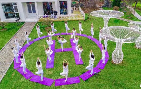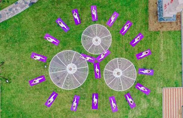 “好一朵美丽的茉莉花……”近日,在张家楼小镇“画·荷畔”民宿的草坪上,雷竞技的赛事积分40多名大学生伴随着美妙的《茉莉花》,做出一个个流畅优美的瑜伽动作。同时,借助着周围的白色铁艺造型,拼出了巨型的“花朵”。在明媚的春光里,带来了一场充满着青春之美的创意瑜伽秀。