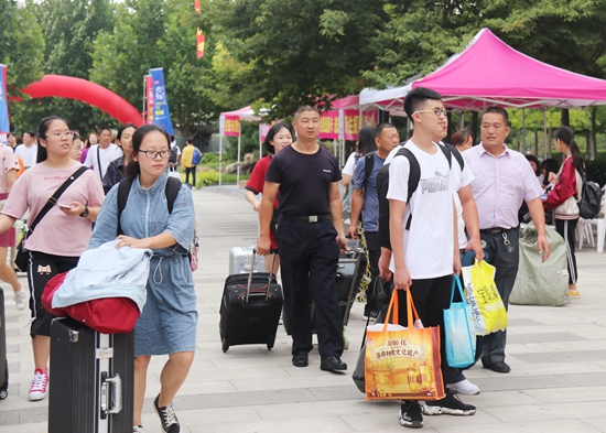 新生报到校园里热闹非凡