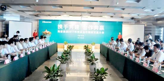 6月16日下午,海信集团在海信大楼举行了“携手共建、合作共赢——海信集团2011年校企合作院校交流会”,学院党委副书记陈玉水、安置办主任张勇到会交流合作经验并签订校企合作意向。