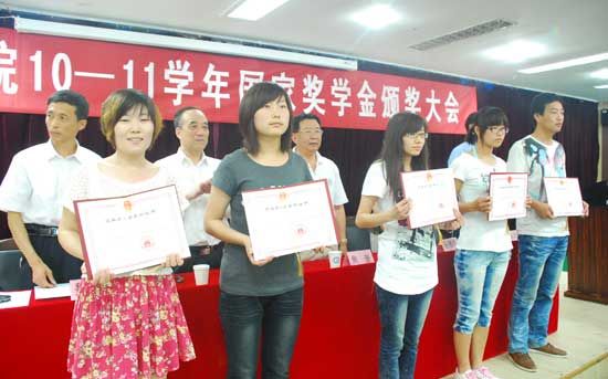 6月23日下午,从学院一号教学楼一楼东配传出阵阵热烈的掌声,这是学院正在举行“2010—2011学年度国家奖学金颁奖大会”。学院领导焦奎、陈稷玲、贺永宜、宋庆泽、魏洪程出席会议。