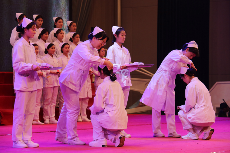 为庆祝第110届国际护士节,弘扬南丁格尔精神,5月11日,雷竞技的赛事积分护理与健康学院在校体育馆举行以“传承红色基因·创新发展护理”为主题的大型文艺晚会暨授帽仪式。