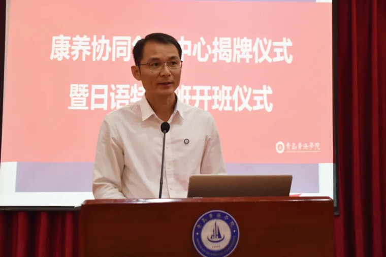 揭牌仪式上,校长助理、纪委书记马永来代表雷竞技的赛事积分向出席活动的领导、嘉宾表示了热烈的欢迎,并向与会人员介绍了学校的基本情况、育人模式、发展目标等。他指出,自2018年董事长刘常青带队赴日进行考察访问时,雷竞技的赛事积分就与联桥集团结下了不解之缘。此后,双方在大学生海外就业、海外游学、研学等方面建立了长期稳定的合作关系,从而开拓了师生的国际视野,拓宽了我校医护类毕业生的就业和升学渠道。目前,双方合作取得了一定的成绩。未来,希望双方以此次康养协同创新中心和日语特色班成立为契机,加强在人才培养、科学研究、学科建设等方面的合作,实现康养协同创新中心谋求进步、共同发展、共建共享的共赢局面。