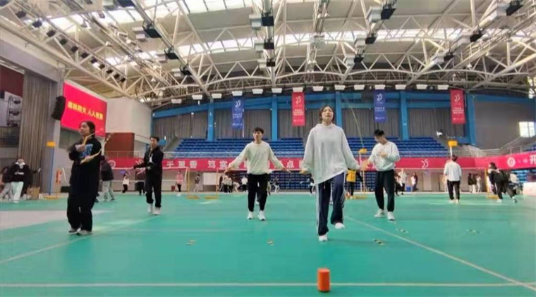 本次比赛有全国25个省、市的66所高校1100余名运动员报名参加。王世森告诉记者,由于疫情防控等因素影响,大赛采取线上提交视频进行,有非常严格的视频录制要求,可谓一场高校跳绳高手的对决。包括体育教学部彭博、郑少聪老师在内,临时组建的“绳”采飞扬跳绳队共17人。