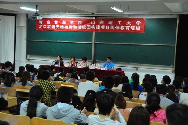 5月23日下午,我校与山东理工大学联谊,在一号教学楼举行“对口联谊无结核病和谐校园构建项目同伴教育培训”启动仪式。山东理工大学校医院院长任玉宽、副院长张凤梅、我校团委书记张艳出席了本次活动。同时参加本次仪式的还有山东理工大学两名志愿者代表及我校志愿者三百余名。