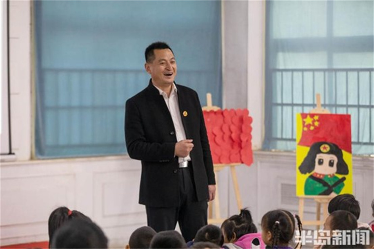 学雷锋纪念日到来之际,李桂臣为幼儿园的小朋友讲雷锋故事