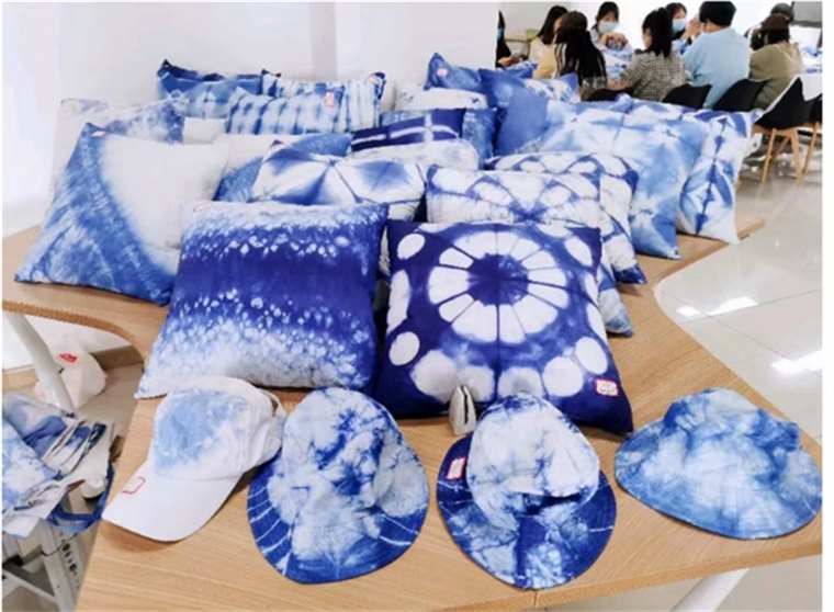 把非遗传承人请到课堂上,为学生们亲手传授扎染、传统皮具、民俗布偶等手工艺品的制作过程;推出课程《指尖上的非遗——中国传统手工艺鉴赏》,作为视觉传达设计专业的学生开设专业必修课;与青岛市手工艺协会及十余个非遗工坊建立了产学研合作关系,共同致力于非遗文化传承和手艺产品开发……