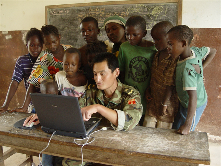 当班长的第三年,李桂臣赴利比里亚参加维和行动。“作为雷锋的部队,我们去利比里亚之前就带去了一些有关雷锋的书籍、日记,上面的内容都有中英文的对照。”通过一段时间的交流,李桂臣和战友们让那里的青年和孩子们了解了雷锋是谁,同时还搞起了雷锋故事演讲会。“一个非洲学生,用刚刚学会的一点中国话,背诵了一段雷锋日记,这让我很是感动。”李桂臣回忆。