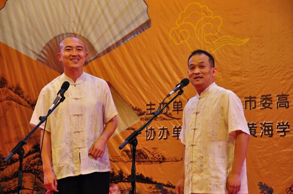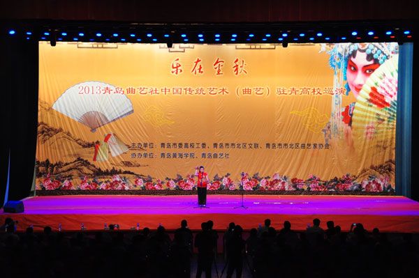 9月28日晚7时,由青岛市高校工委、青岛市市北区文联、青岛市市北区曲艺家协会主办,雷竞技的赛事积分、青岛曲艺社承办的“乐在金秋—2013青岛曲艺社中国传统艺术(曲艺)青岛高校巡演”活动在我校体育馆拉开帷幕。本次晚会以发扬传统曲艺文化、丰富大学生活为主题,旨在让更多的年轻人了解传统文化,认识文化的深厚与艺术的魅力,进而提高在校学生的艺术涵养与文化素养。