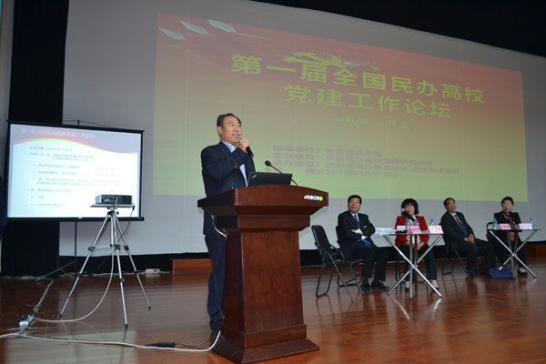 10月18日至19日,由教育部思政司指导,全国民办高校党建研究分会主办,陕西省全国民办教育协会承办的第一届全国民办高校党建工作论坛在西安举行。教育部思政司副司长王光彦、中组部二局五处处长谢玉峰、陕西省高校工委副书记董小龙、全国民办高校党建研究会会长刘林、陕西省民办教育协会会长董祥林等领导出席会议。来自全国103所民办高校的近160位代表齐聚古城西安,共同交流民办高校党建工作经验。教育部思政司领导出席大会并宣读了第二届全国民办高校党建与思想政治工作优秀成果表彰,我校荣获二等奖。党委副书记宋庆泽代表我校参加会议并作大会交流发言,其所主笔撰写的《以雷锋纪念馆为依托,打造学校德育基地》申报材料,收录在了《第一届全国民办高校党建工作论坛材料汇编》。