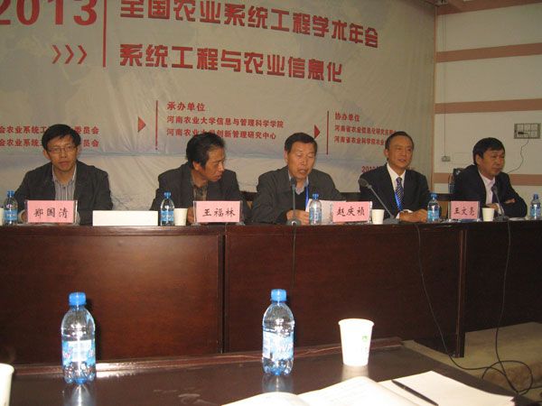 2013年全国农业系统工程学术年会于10月26日至27日在河南农业大学顺利召开,会议由中国系统工程学会农业系统工程专业委员会、中国农业工程学会农业系统工程专业委员会主办,河南农业大学承办,本次会议主题是“系统工程与农业信息化”。我校赵庆祯副院长作为中国系统工程学会农业系统工程专业委员会主任主持了会议。
