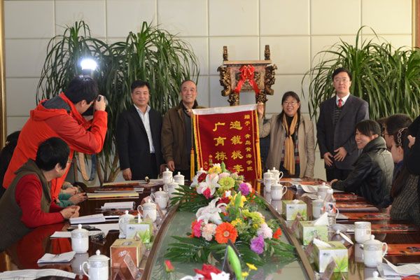 最后,博士生考察团向我校赠送了题有“遍栽桃李树,广育栋梁材”的锦旗,两校表示今后会进一步密切联系与合作,共同提高办学水平,为建设美丽的青岛做出应有的贡献。