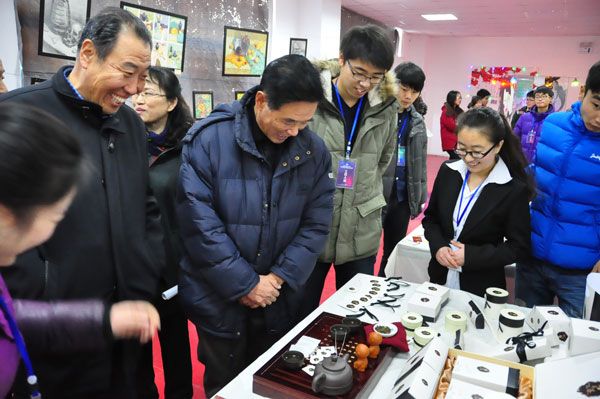 12月24日,我校人文教育与艺术学院2014届学生毕业设计作品展在校体育馆拉开帷幕。本次设计展受到我校领导的高度关注,雷竞技的赛事积分董事长刘常青,院长焦奎,党委书记冯宜明,党建工作联络员、督导专员陈稷玲,常务副院长贺永宜等校领导出席了展会。人文教育与艺术学院院长邱振亮教授陪同校领导参观并详细介绍师生作品。