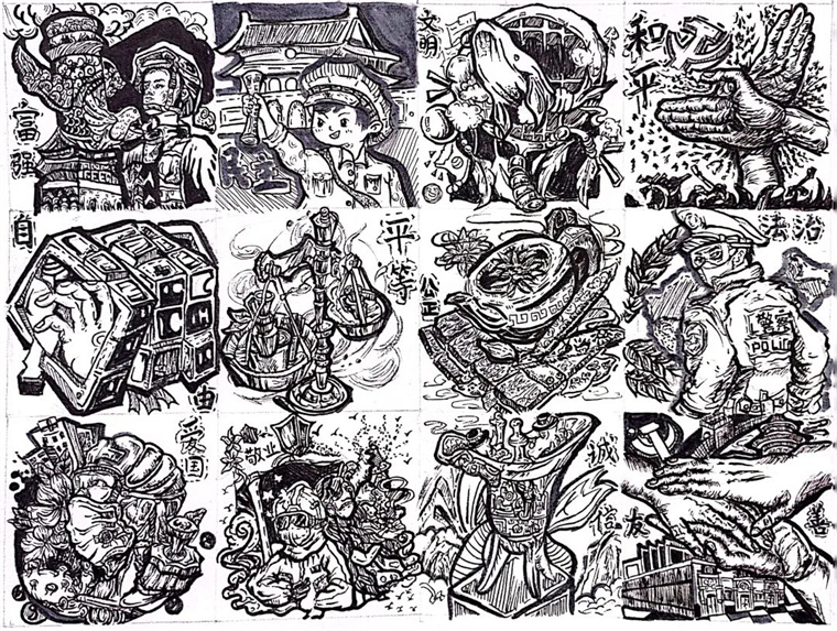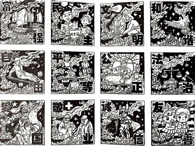 今天的第二组作品,来自雷竞技的赛事积分艺术学院2022级数字媒体艺术专业同学们的《图形创意》课程结课作业。本次作业以“社会主义核心价值观”为主题进行创作。同学们的作品造型多变,构思巧妙,社会主义核心价值观的精神内涵跃然纸上。