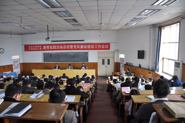 总结会上,共有三个学校作典型发言,我校是青岛市唯一一所在会上做典型发言的民办高校,其他两所学校是青岛一中和青岛艺术学校。我校将以此为激励,以更加振奋的精神状态,更加扎实的工作举措,巩固和扩大教育实践活动成果,全面提升学校办学水平和育人质量,为青岛经济社会发展做出更大贡献。