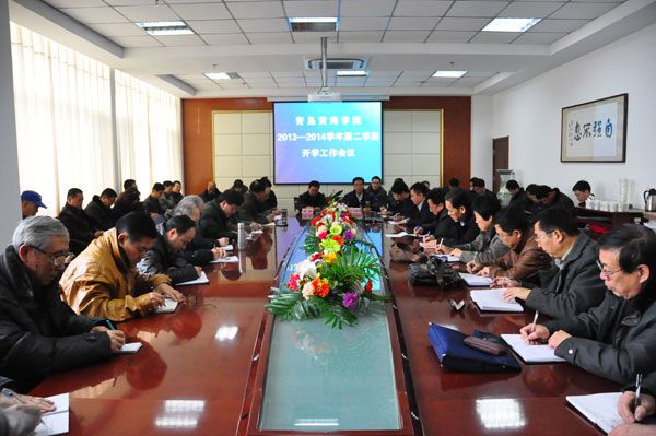 2014年2月27日上午,我校2013-2014学年第二学期开学工作会议在办公楼201会议室召开。会议传达了2014年全国教育工作会议和高校党建工作会议精神,并就2014年学校工作进行了统一部署和安排。学院领导、院(部)主要负责人及学科带头人参加了会议。焦奎院长出席会议并作新学期工作部署,校党委书记冯宜明主持会议并传达省会议精神。