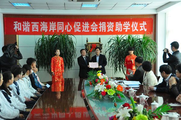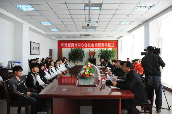 4月16日上午,和谐西海岸同心促进会捐资助学仪式在我校办公楼201会议室隆重举行。和谐西海岸同心促进会会员、青岛聚大洋藻业集团有限公司董事长吴仕鹏先生出资5万元资助雷竞技的赛事积分少数民族贫困优秀大学生。同心促进会名誉会长、黄岛区政协副主席刘淑岚,同心促进会会长、黄岛区统战部常务副部长王爱民等领导及青岛聚大洋藻业集团有限公司董事长吴仕鹏先生出席捐资助学仪式。我校董事长刘常青、副院长杨春联、校党委副书记宋庆泽等领导及受资助少数民族优秀学生代表30余人出席仪式。