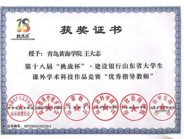 近日,第十八届“挑战杯”山东省大学生课外学术科技作品竞赛各个赛道获奖名单陆续发布,我校智能制造学院在多个赛道中共斩获国家级卫星级奖项1项、省部级一等奖4项、二等奖2项、三等奖3项,王大志老师获得”优秀指导教师“奖。