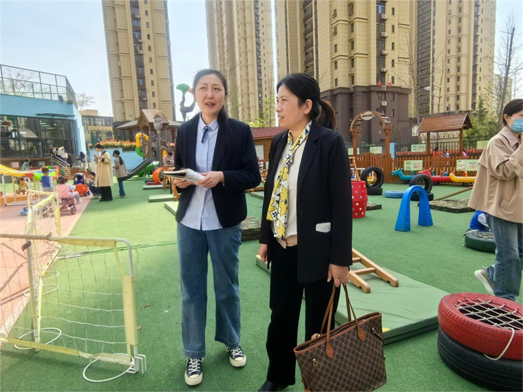 畅玩游戏环节,教育学院教师参观该园的户外自主游戏和儿童视角下的室内区域游戏。在幼儿园教师的带领下,学院领导依次参观了户外前操场、百果园和足球场。院长周萍表示,幼儿园户外设计具有自然生态性,例如“空中滑索”“战斗地道”“循环瀑布”等充分利用了地域空间的优势,每一个活动区域的设计与布置均体现着幼儿园教师和工作人员的精心与用心,幼儿在这些区域中自由探索、尽情玩耍,正是体现了“畅玩游戏”的活动宗旨。院长助理刘艺敏表示,户外的每一个活动都值得深入观察,每一个活动都渗透着教育原理、体现着幼儿的心理发展特点,都是值得教师学习并且收集的教学资源和教学案例。