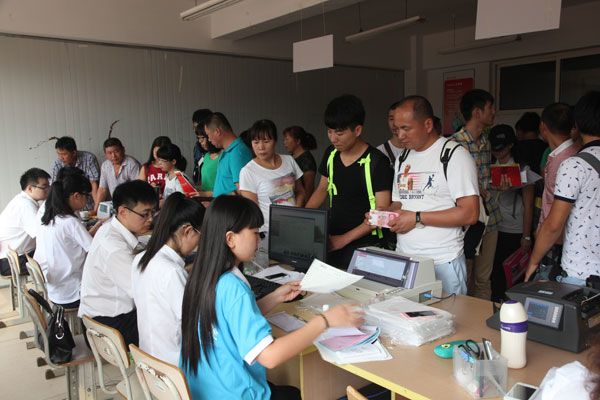 近日,黄海学院2014级新生开始报到,校园内人头攒动、场面火爆,教学楼前停满了各种车辆,部分新生甚至一大早就在家长的陪同下,拎着大包小包的来到了学校。