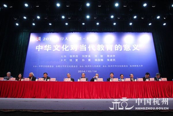 10月14日,由中华文化促进会、台湾太平洋文化基金会主办的“2014两岸人文对话”在杭州师范大学举行,本次活动以弘扬中华文化、促进两岸文化交流为主旨,邀请两岸专家学者以中华文化视角,共同探讨中华文化对当代教育的意义。第十届全国政协副主席张怀西,中华文化促进会主席高占祥,台湾太平洋文化基金会董事长钱复,国台办副主任、中华文化促进会顾问叶克冬出席了活动。我院董事长刘常青,国学院院长于善懃应邀参加了活动,并与国学大师刘梦溪、孙震、何俊进行了交流。