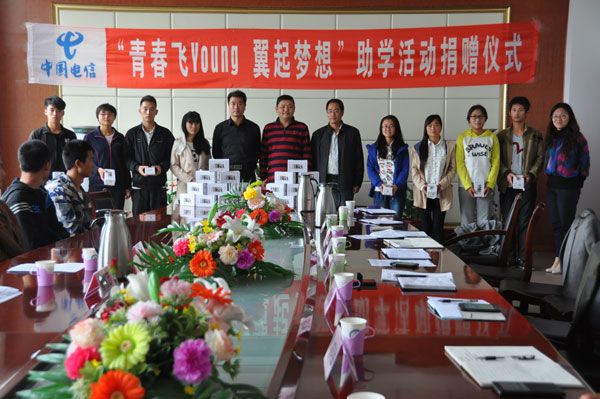 据悉,此次“飞Young青春,翼起梦想”助学计划由教育部、中国电信和中国教育发展基金会共同发起,面向山东50所高校,为贫困学子联合提供价值500万的助学包和勤工助学的机会。在我校的捐赠活动中,中国电信为我校8个二级学院的100名学生捐赠了100部手机和每人240元的话费补贴,并提供“飞young创业社”勤工助学岗位。