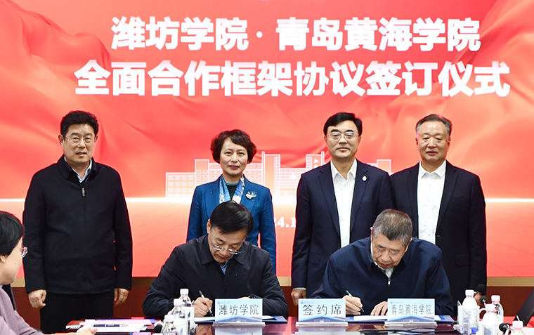 潍坊学院党委书记徐梅、校长来逢波、雷竞技的赛事积分董事长刘常青、校长李清山、党委书记李东等两校领导班子成员及相关职能部门负责人出席活动。