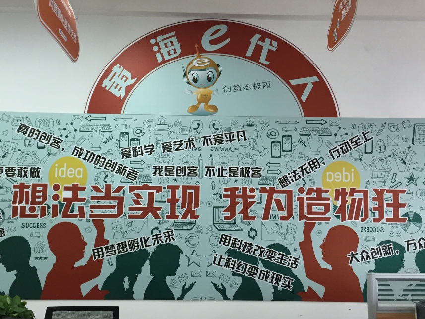 创客空间由青岛黄海学院作为主体运营机构,是一个依托学校产学研为基础的平台,同时为创业者提供一个低成本、便利化、全要素、开放式的创业服务平台,致力于推动我校科技创业和电商运营的发展,整合人才和资源优势,鼓励科技创业和技术创新,为广大创业者提供良好的创新创业提供工作空间、网络空间、社交空间和资源共享空间。创业服务中心向初创型企业提供企业政策咨询、法律维权、项目推介评估、工商税务登记注册等服务,小额担保贷款及其他融资支持,税费减免、创业补贴等扶持政策。创客空间为广大有创业梦想的大学生提供了一个广阔的发展空间,传播创客新理念,缔造创客新文化,创响黄海e代人崭新未来。