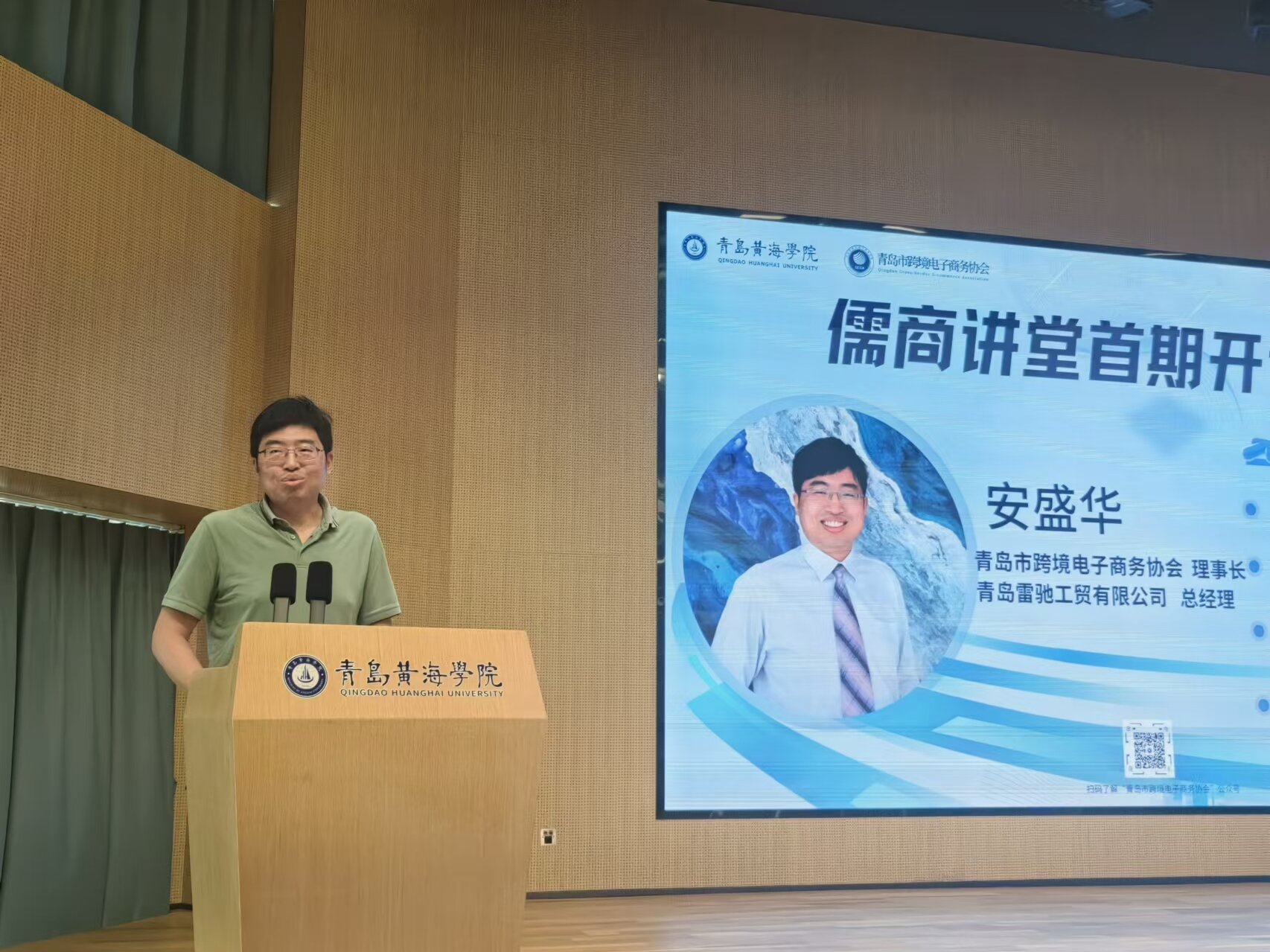 2024年5月22日,为深化产教融合,培养具备现代商业素养与儒商精神的复合型人才,国际商学院与青岛市跨境电子商务协会携手合作,成功举行了儒商讲堂的启动仪式并举办了首期活动。儒商讲堂诚邀青岛市跨境电商领域的优秀企业家现场分享行业发展前沿、企业家精神、创业故事、思维逻辑、成功经验等,启迪并激励热爱创业、敢于创新的黄海学子构建合理的商业思维,学习跨境电商的前沿知识,步入跨境电商领域的创新创业之门,青岛黄海学院人力资源部部长孙在福主持本次儒商讲堂活动。