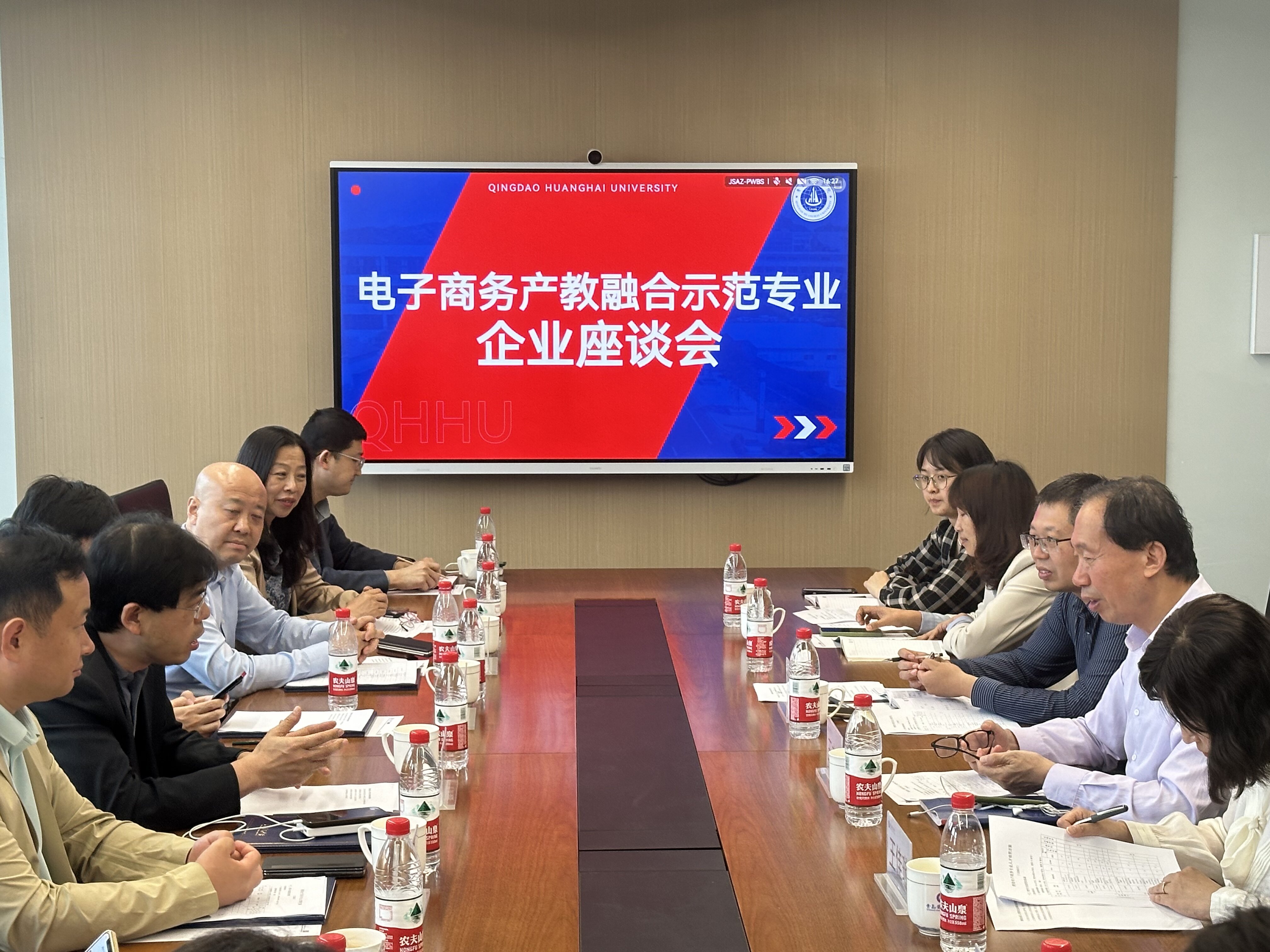 讲座结束后,国际商学院与青岛市跨境电子商务协会在知信楼406会议室举行了产教融合企业座谈会。青岛市跨境电子商务协会的专家和企业家代表就电子商务行业的发展趋势、市场需求以及人才培养的实际需求等方面进行了阐述。他们普遍认为,随着跨境电商的快速发展,对电子商务人才的需求也越来越迫切,特别是在数据分析、跨境营销、跨境电商运营等方面的专业人才更是供不应求。针对这些内容,与会人员进行了深入的讨论和交流。大家一致认为,要加强校企合作,共同构建电子商务人才培养的生态系统。学院可以通过与企业合作开展实践教学、课程设计等活动,提高学生的实践能力和创新能力;企业也可以为学生提供实习、就业等机会,帮助他们更好地了解市场需求和行业趋势。此外,与会人员还就如何加强师资队伍建设、完善课程体系、优化实践教学等方面提出了具体建议。这些建议将为国际商学院和青岛市跨境电子商务协会在电子商务人才培养方面的合作提供有益的参考和指导。