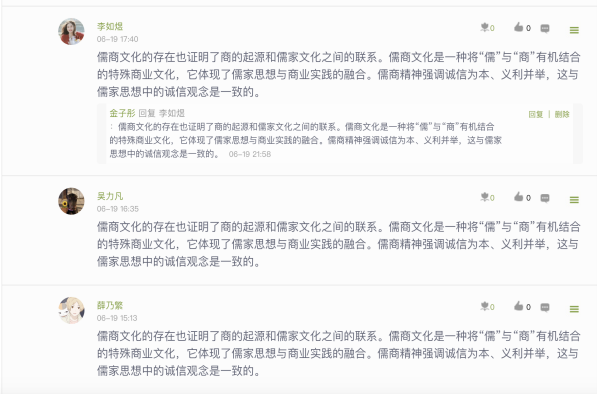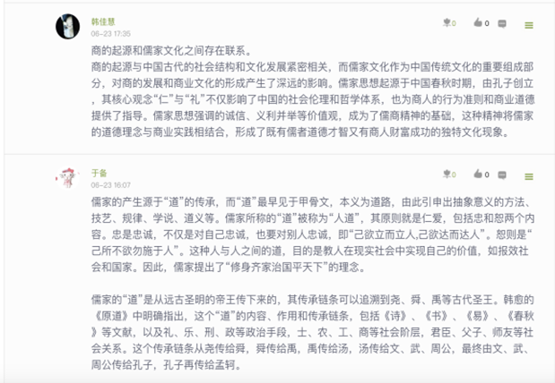 学而不思则罔,思而不学则殆。学习与授课过程中,在课前、课中和课后,要加强学生的思维塑造。通过话题讨论,对儒学、孔子和商道进行探讨,激发学生的思维,并对儒家道义哲学和人生观。价值观。义利观的形成,做好前期的思想养成,从而提升课程思政的育人效果。