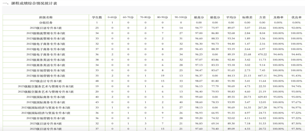 图9课程成绩综合分析表