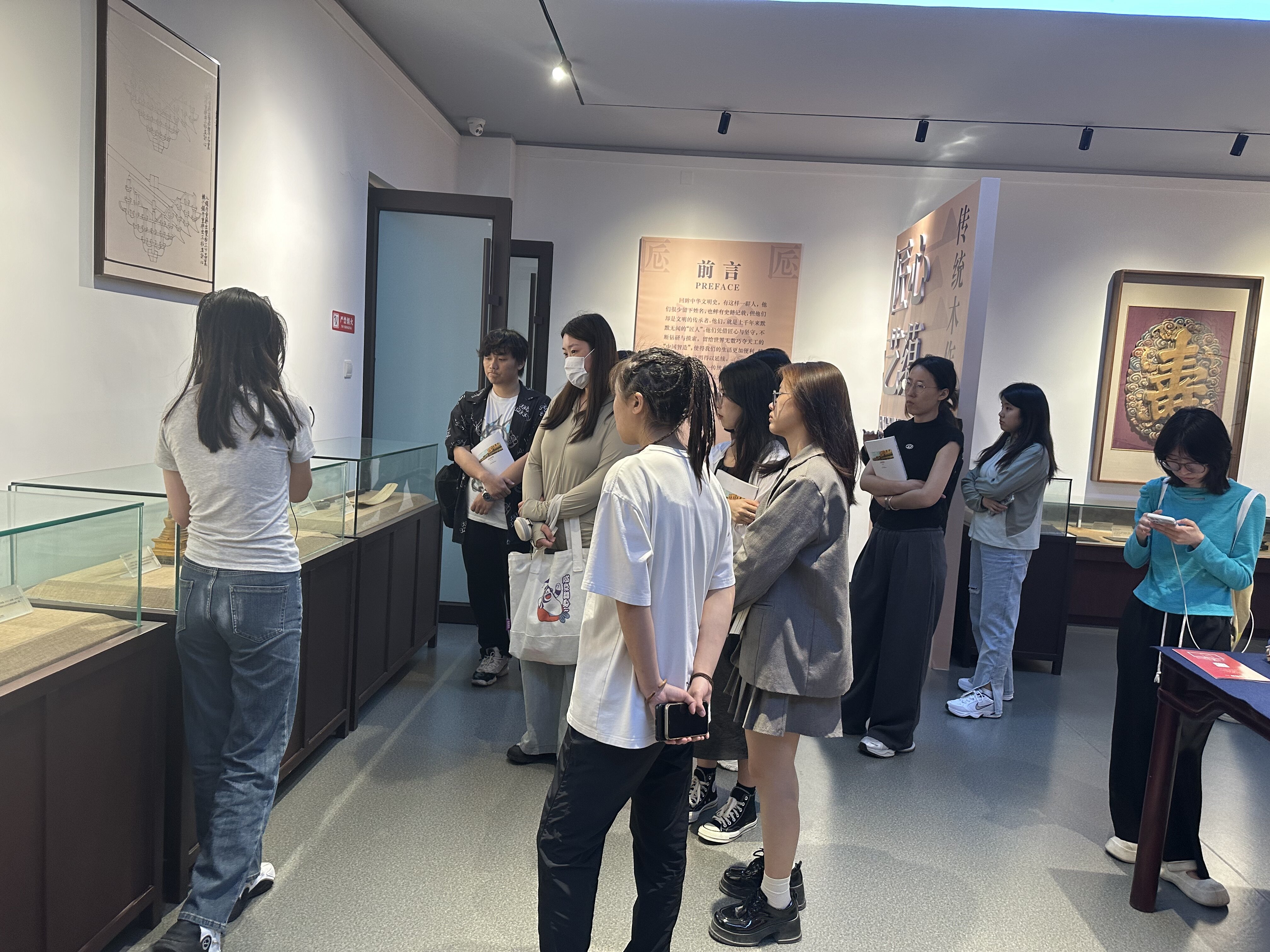 接着,师生们在志愿讲解员的带领下,来到了青岛黄海学院博物馆。这里陈列着各种精美的文房砚台、书画和陶瓷,每一件展品都散发着中华传统文化的独特魅力。同学们不仅欣赏到了这些艺术品的精湛技艺,还通过博物馆的教育和研究活动,如传拓技艺课程,对传统文化的传承有了更深刻的理解。此外,博物馆的文创产品如古风团扇和传拓相框,既美观又富有创意,成为了同学们参观后,对传统文化和自身项目相结合的特别关注点。青岛黄海学院博物馆不仅是一个展示艺术和历史的场所,更是一个传承和推广中华优秀传统文化的重要平台,如何将这个平台让更多的人了解,并让大家从中受益,是市场营销专业《广告学》同学们的使命和任务。