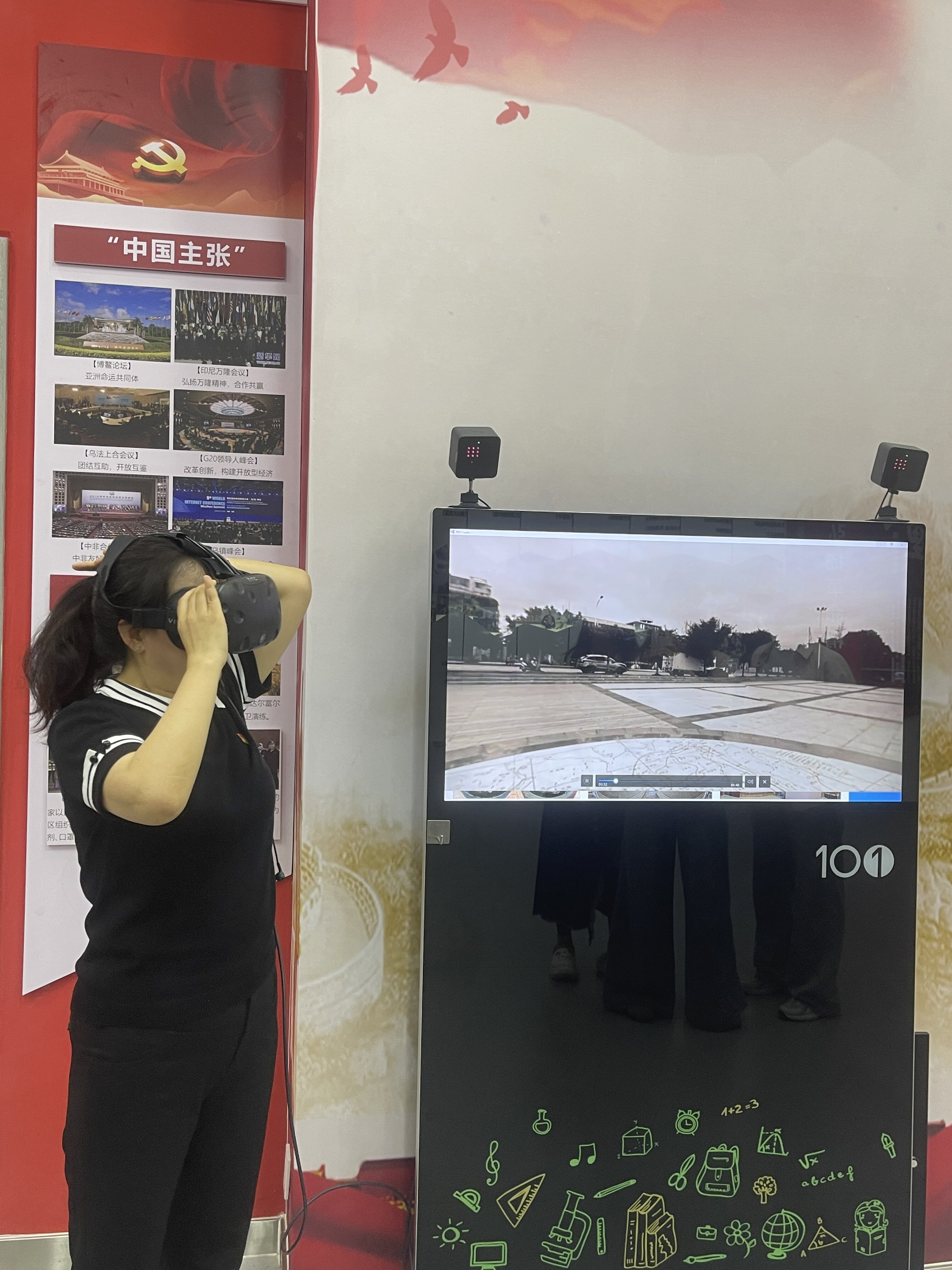 参观最后一站,师生们踏入了位于四层的红色VR体验馆。在这里,他们感受到了高科技手段,体验了红色VR游戏、竞赛和各类虚拟现实场景,仿佛穿越时空,身临其境地感受到了革命战争时期的艰苦环境和激烈战斗。这种全新的体验方式让师生们更加深刻地理解了革命先烈的英勇付出,增强了他们的历史责任感和使命感。