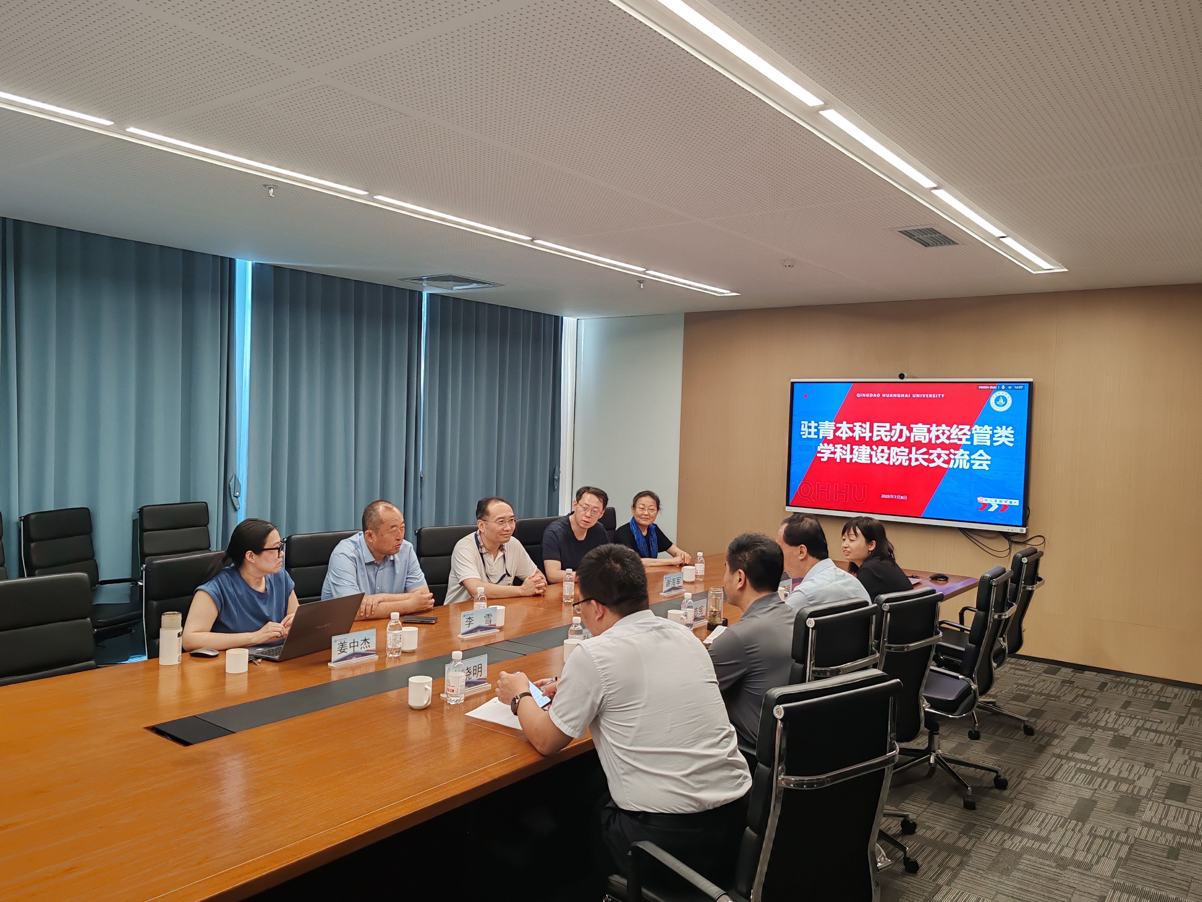 为加强校际交流与合作,推动驻青民办本科高校经管类学科高质量发展。7月8日,国际商学院组织召开驻青民办本科高校经管类学科建设院长交流会。青岛城市学院、青岛滨海学院、青岛恒星学院、青岛工学院等多所高校的经管类学科负责人齐聚一堂,共商学科发展大计。