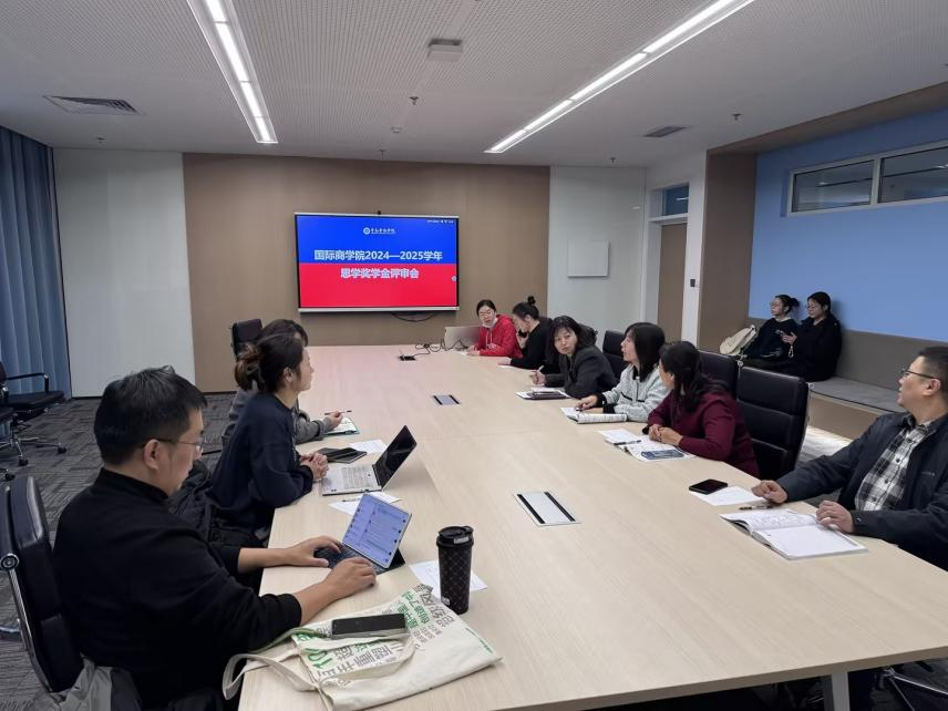 以思为基,以学为进;以奖为励,以励促行。国际商学院2025-2026学年思学奖学金评审会于知信楼511正式召开。会议由院长助理王佳璇、学工主任苑丽丽、教学秘书胡登龙、行政秘书姜梅梅、全体教研室主任以及2位思学奖学金候选人组成。经过严谨细致的评审,两名品学兼优、勤学善思的优秀学子凭借扎实的学识、突出的表现成功获得学院推荐到学校参选资格。