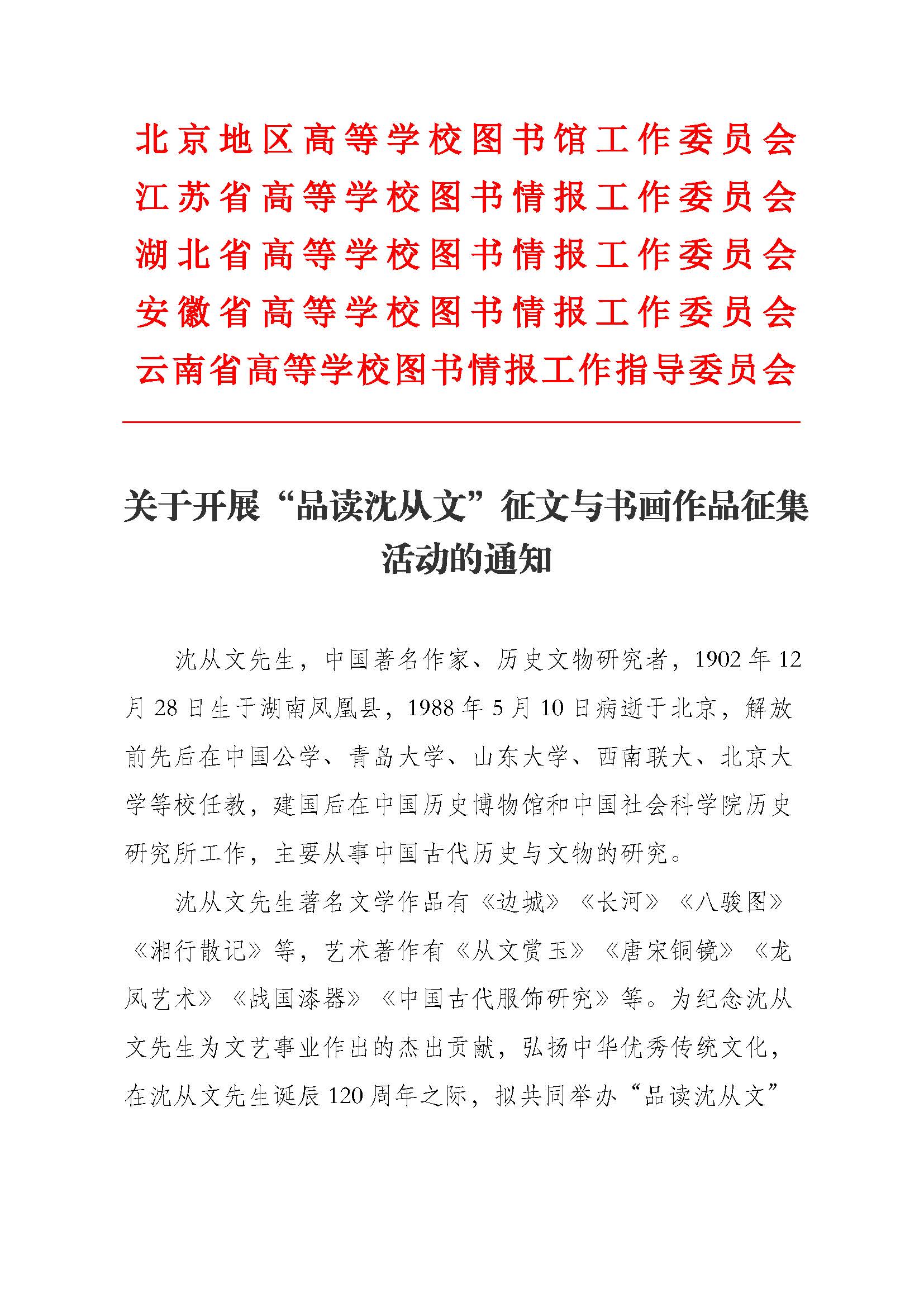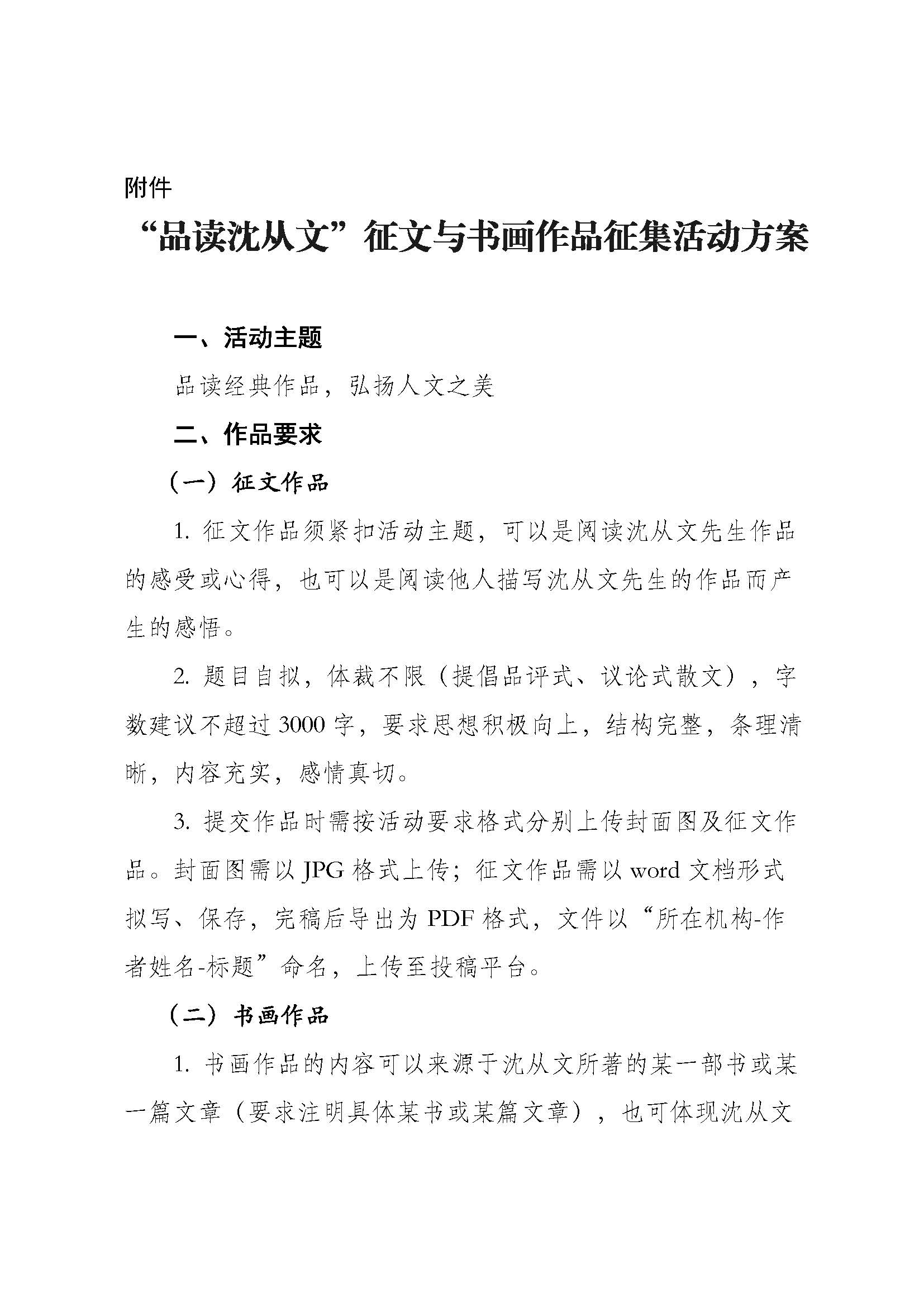 关于开展“品读沈从文”征文与书画作品征集活动的通知