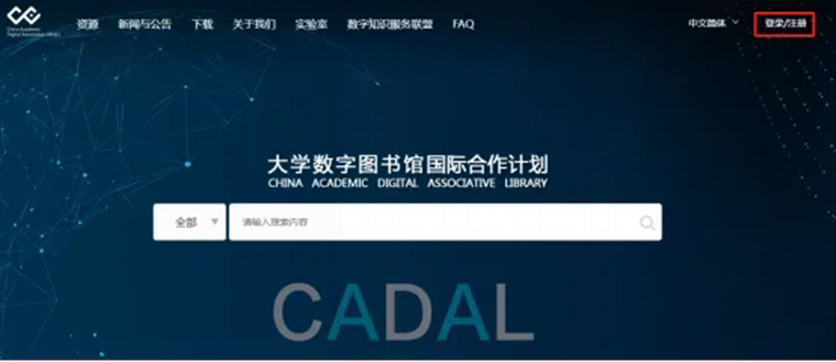 第一步:访问CADAL(大学数字图书馆国际合作计划)官网