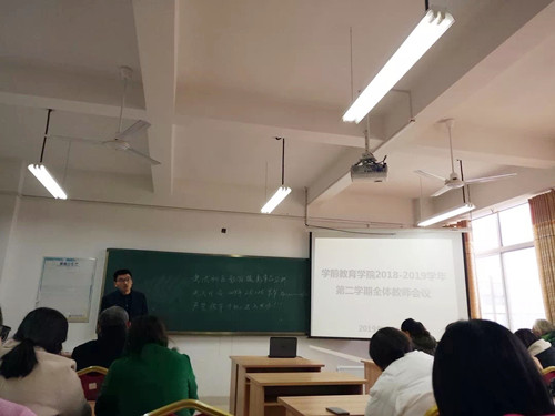 新的学期,新的期待,踏着坚定的步伐,在追逐梦想的道路上努力奔跑。3月2日9时,我院在知韵楼507教室召开了2019年新学期教师会议,全院教职工参加了会议,学院副院长周萍、院长助理王剑、教学秘书云鹏宇在会上发表讲话。