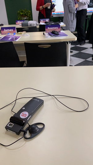 (研讨会举办方为与会者提供的免费同声传译设备)