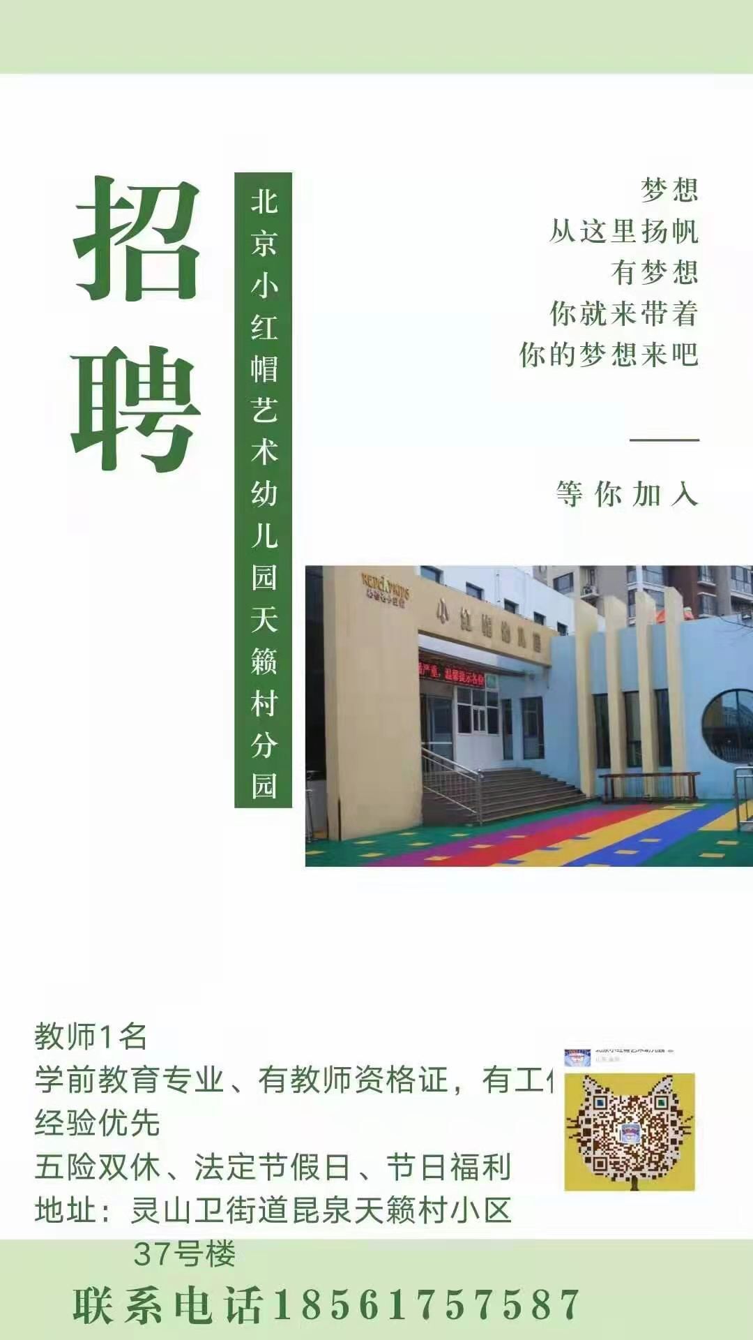北京小红帽艺术幼儿园天籁村分园招聘信息