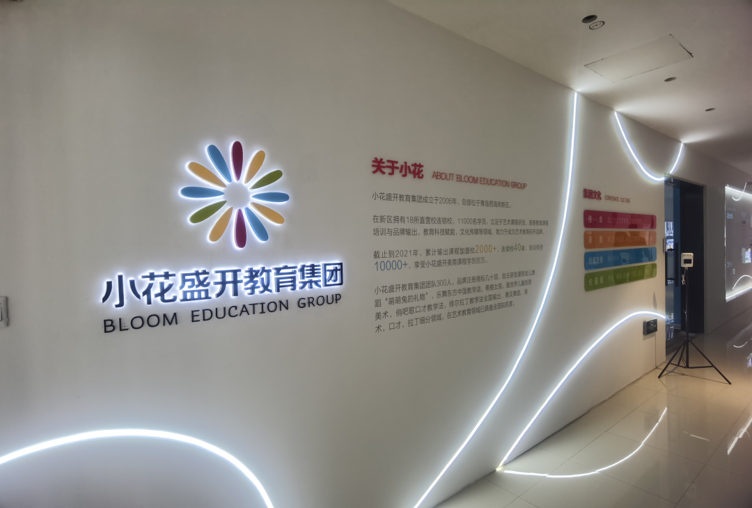 交流中先参观了总部环境,宽敞明亮的办公大厅,以白色主调为主,干净清爽。布局鲜明的宣传墙,现代化的灯光设计,井然有序的办公区,每一处都在彰显着小花盛开教育集团独特的文化理念。