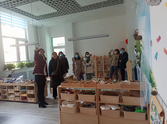 随后我们来到刚刚落成的红石崖中心幼儿园。在红石崖中心幼儿园高园长的带领下参观了幼儿园室内外环境,同时周萍同志也提出我们为了助力乡村振兴,也为了日后我们的学生能在优质的幼儿园见习实习,期待双方能有更深入的合作交流。