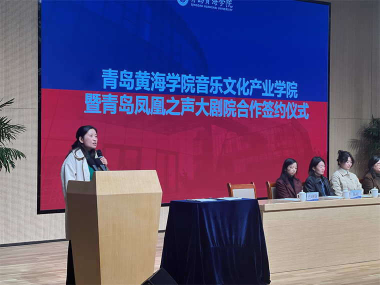 青岛凤凰之声大剧院总经理马蓉在致辞中表示在未来的道路上,希望双方携手合作,共同致力于培养更多音乐文化领域的优秀人才,愿青岛黄海学院全体师生在学术、文化、艺术的殿堂中薪火相传,成就更加辉煌的明天。