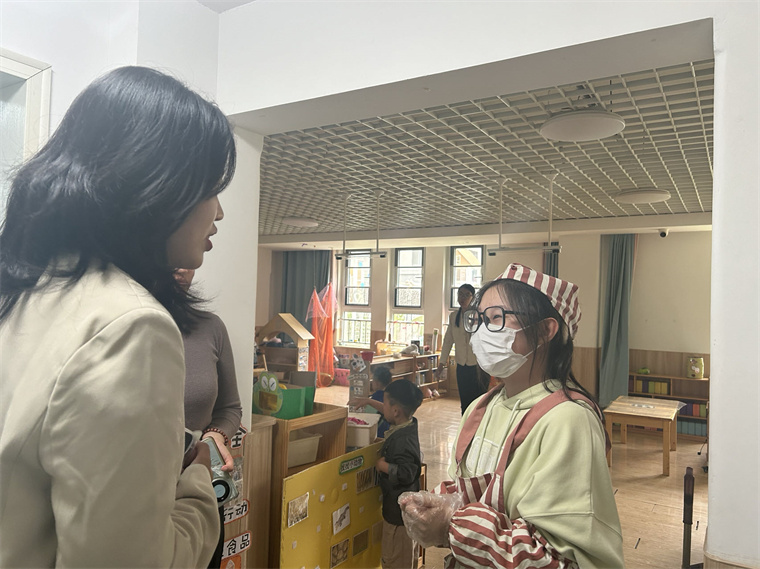 随后,赵园长向指导教师们介绍园所发展及办园理念,在赵园长的带领下,指导教师们走进见习生所在的班级活动室,深入了解学生的见习情况与工作表现,倾听学生的需求与体会。