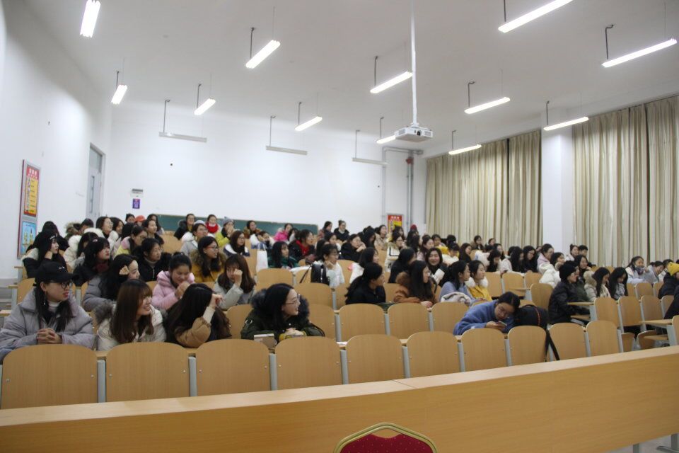 2019年1月1日晚上7:00学前教育学院党支部党员陶灵慧在知韵楼004向16级的学生们分享考教师资格证的经验。