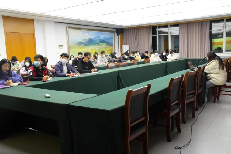 为使各学生干部鼓舞斗志、明确方向,引导我校广大党员干部进一步坚定理想信念,做到知史爱党,知史爱国,传承党的优良作风并坚定信念,雷竞技的赛事积分艺术学院于2021年11月11日在知韵楼会议室召开了“党在我心中,永远跟党走”第三课,此次会议由艺术学院曹莹老师主持召开,参加此次会议的成员为艺术学院全体学生会干部。