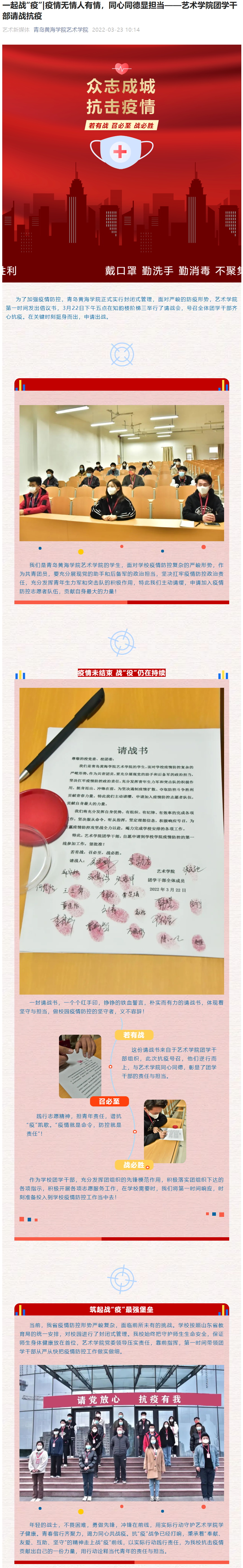 一起战“疫”|疫情无情人有情,同心同德显担当——艺术学院团学干部请战抗疫